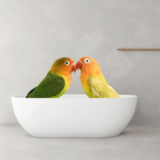 Når de hopper i badet er det ikke bare for sjov – de fjerner snavs, støv og de irriterende små parasitter, der ellers ville klumpe sig sammen og gør deres fjerdragt irriteret. Se vores udvalg af badekar og andre ting til pleje af dine fugle her >