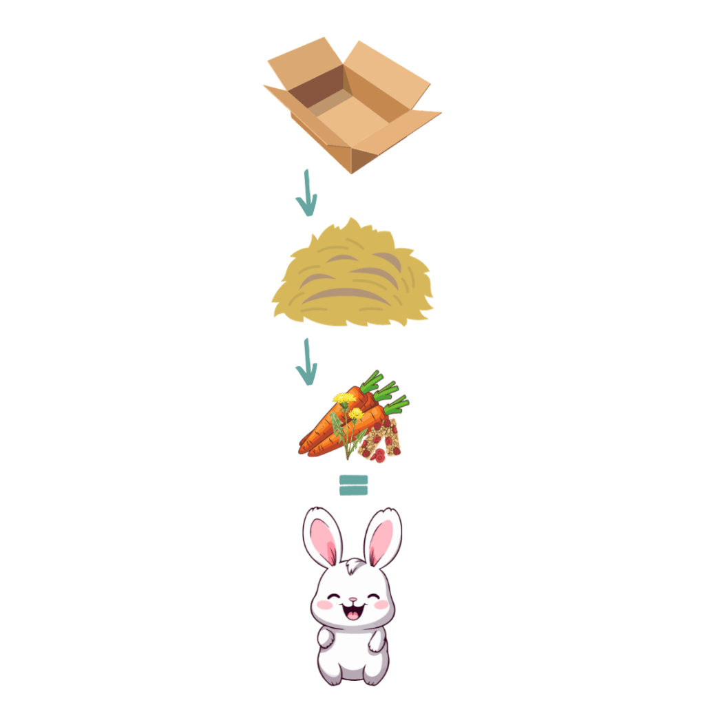 - En masse lækkert hø, så din kanin føler sig komfortabel samtidig med at den spiser.