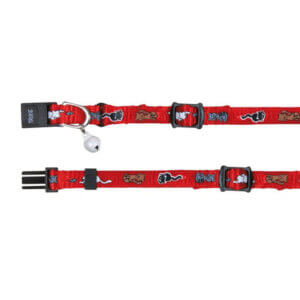 Kattehalsbånd i elastik med poter. Halsbåndet er ca 1 cm. bredt og findes i ass. farver.
