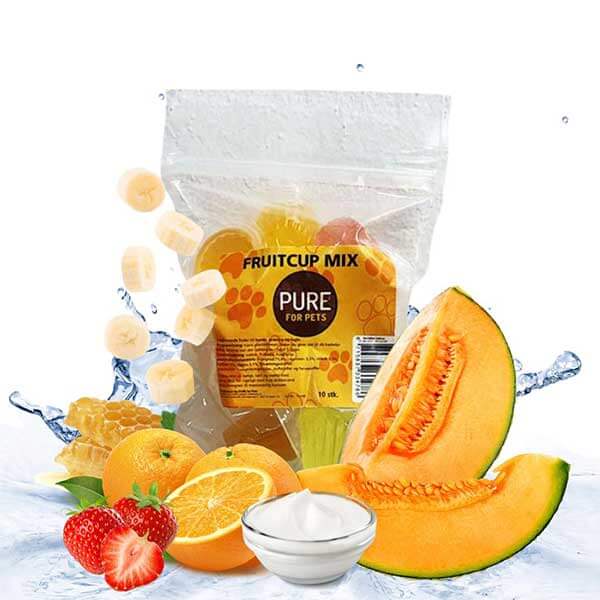 PURE Fruitcup mix er den perfekte, smagfulde snack til fugle og krybdyr. Disse små frugtgele-kopper er ideelle til at forkæle kæledyr og kan bruges både som en daglig snack eller under træning. Fruitcups kan sættes i en holder, så fuglen selv kan spise, når den har lyst, eller de kan holdes i hånden for at skabe tryghed og fremme tillid mellem fugl og ejer under træning.